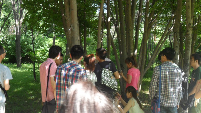 清晨,实习小组乘坐租用的客车前往目的地——黑龙江省森林植物园。进入园区后,实习指导教师向大家讲述了注意事项,之后便按计划开始进行实习实践,带领大家参观了树木标本园、药用植物园、百花园、观果园、五谷园等多个园区。